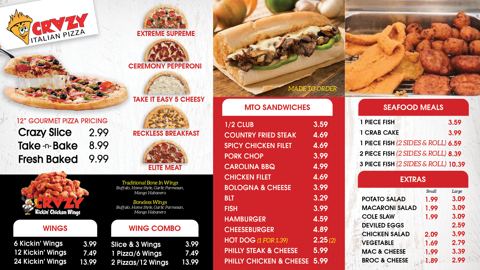 Offering Crazy Italian Pizza accompanied with Crazy Kickin Chicken Wings.